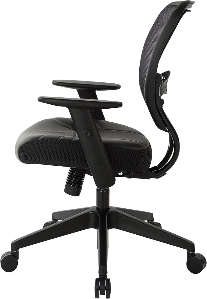 Space Seating 57 Series Professional Dark Air Grid Back Manager's Adjustable Office Chair with Built-in Lumbar Support and Padded Seat, Black Bonded Leather