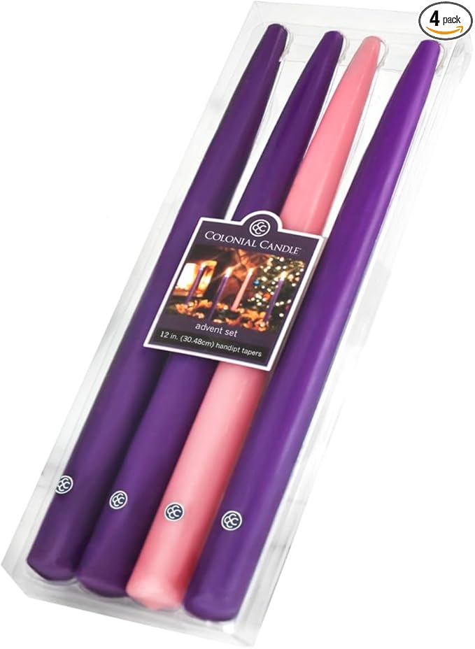 Colonial Candle 12 Inch Unscented Christmas Advent Candle Set (Set of 4), Virtually Dripless Taper Candles, Premium Wax with Cotton Wick, Up to 10 Hour Burn - Made in The USA