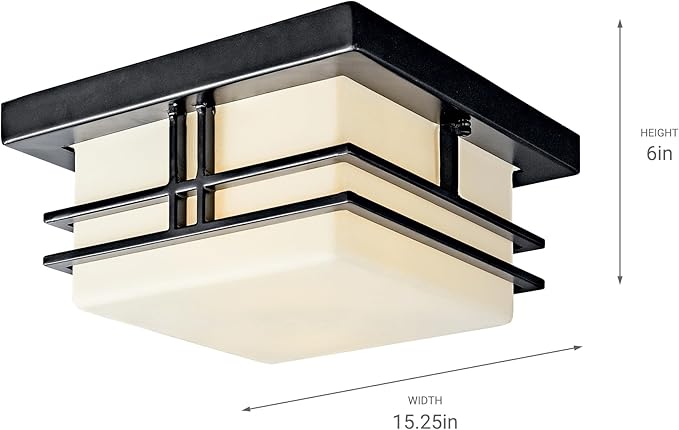 Kichler Tremillo 11.5" Outdoor Semi Flush Light in Black, 2-Light Exterior Ceiling Light with Satin Etched Cased Opal Glass, (11.5" W x 6.5" H), 49206BK