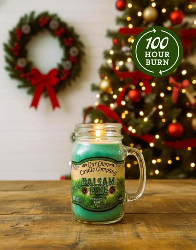 Balsam Pine Scented Mason Jar Candle – 13 oz, Long Lasting 100 Hour Burn, Soy Blend with Lead-Free Wick – Our Own Candle Company