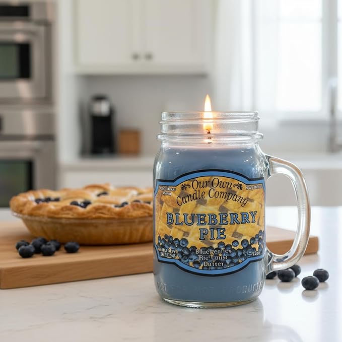 Our Own Candle Company, Blueberry Pie Scented Mason Jar Candle, 100 Hour Burn Time, 13 Ounces