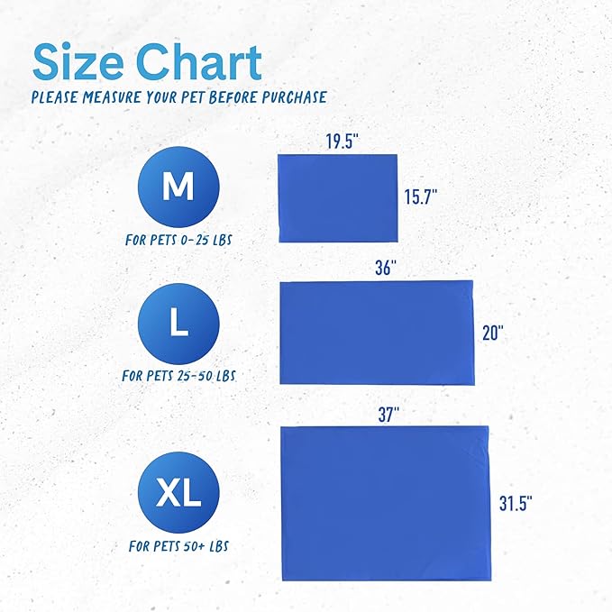 - FIND THE RIGHT SIZE - The Medium gel mat is best for pets from 0-25 lbs. It’s 19.5” long and 15.5” wide.
