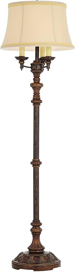 - 【Pre-Assembled Shades】Bolzano traditional floor lamp design with candelabra arms under top shade, from the Barnes and Ivy brand. Italian bronze finish with gold finish highlights, bell shade with top and bottom trim.