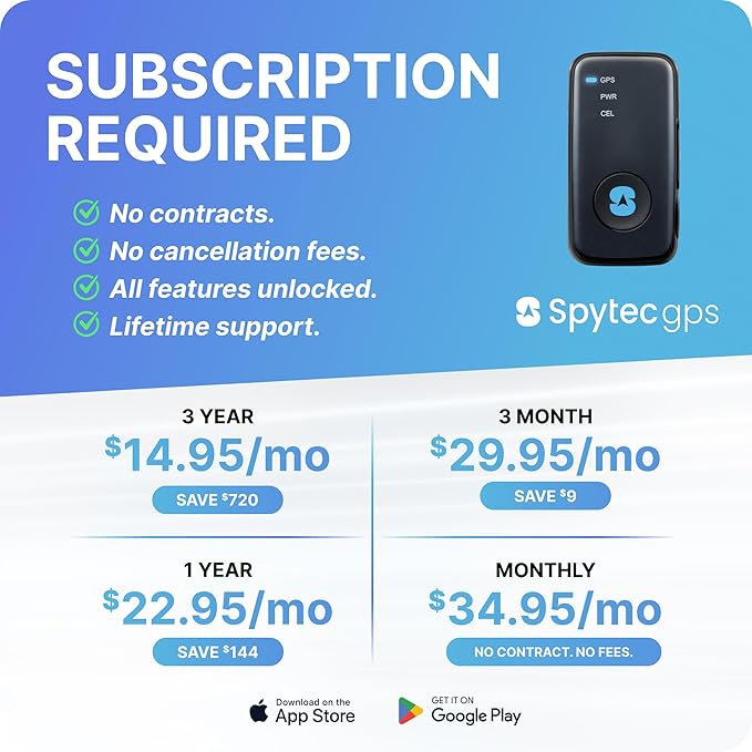 - LOW COST PLAN REQUIRED: Quickly download our easy-to-use app. Activate the device, choose your plan, and start tracking. Subscriptions as low as $14.95/mo. Get 24/7 support on GPS trackers with an active subscription.