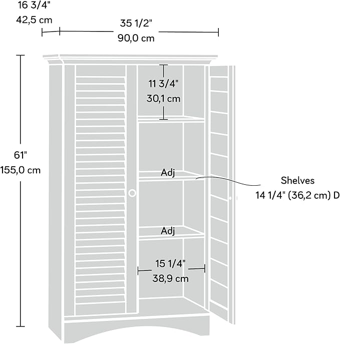 - SAY GOODBYE TO CLUTTER – The Sauder Harbor View Storage Cabinet features hidden storage behind louver detailed doors, providing a stylish solution to keep your space organized and free from mess