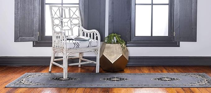 Unique Loom Reza Collection Traditional Persian Style Area Rug, 3 ft x 16 ft 5 in, Gray/Ivory