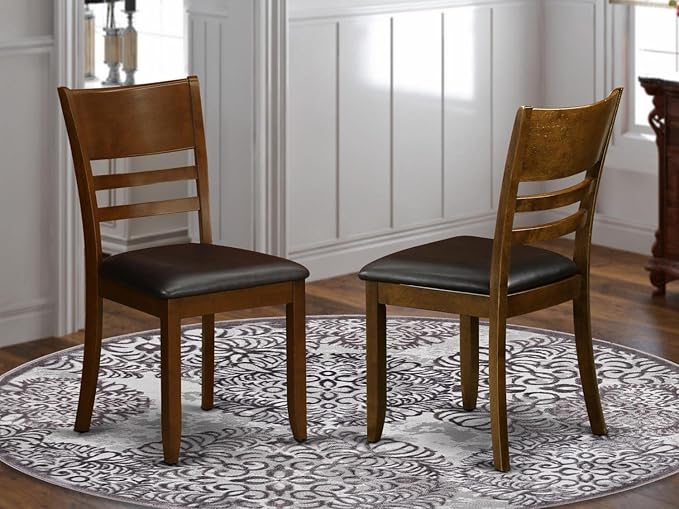 - KITCHEN CHAIR SET OF 2 FINISH: Introducing a set of mid-century dining chairs that exude comfort, with their plush Faux Leather seats and sleek Espresso Finish. The enduring Asian Hardwood back and legs not only ensure durability but also create an impeccable blend of high-class colors, delivering a luxurious touch to your dining room's overall appearance.