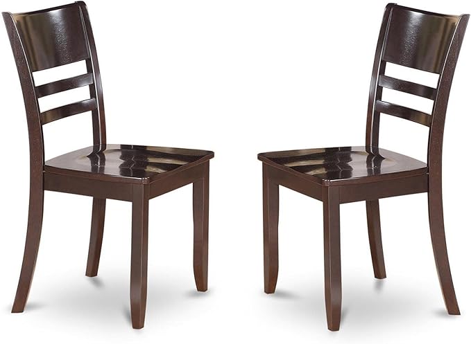 East West Furniture LYC-CAP-W Lynfield Dining Room Chairs - Ladder Back Solid Wood Seat Chairs, Set of 2, Cappuccino