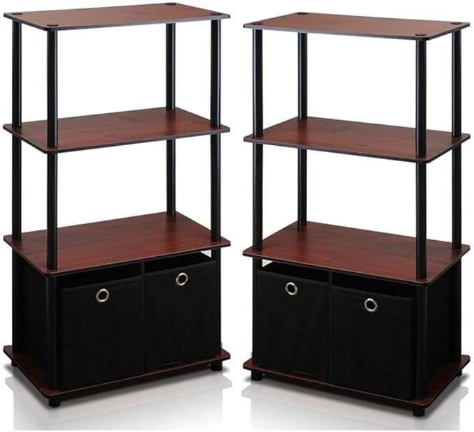 Furinno Go Green 4-Tier Multipurpose Storage Shelf with Bins, Set of 2, Dark Cherry