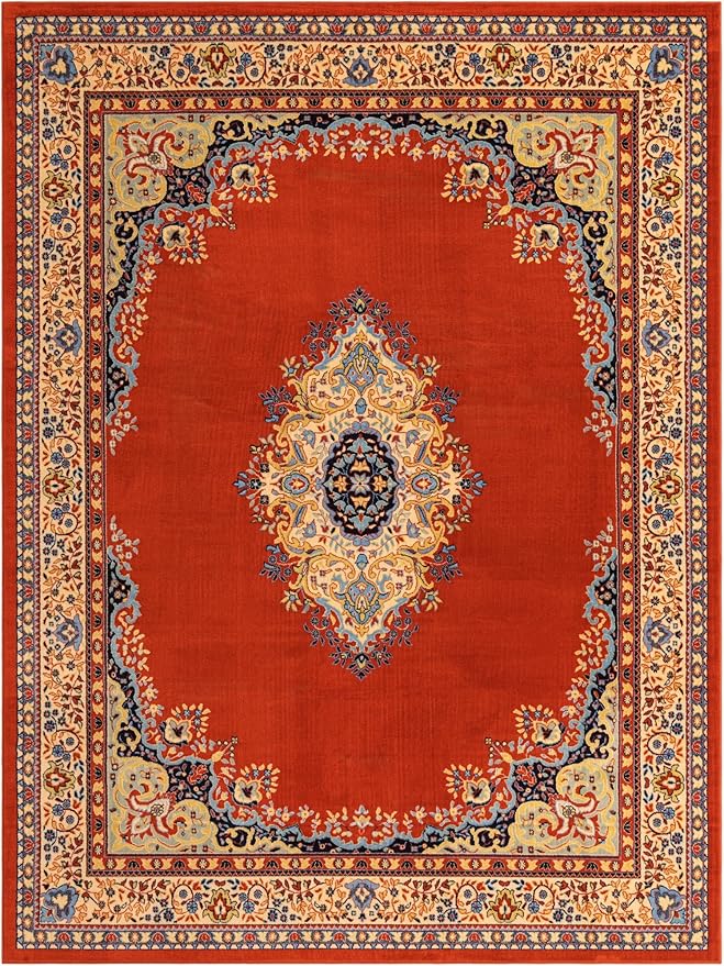 Unique Loom Reza Collection Traditional Persian Style Area Rug, 9 ft 10 in x 13 ft, Terracotta/Ivory