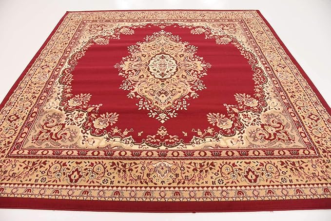 Unique Loom Reza Collection Traditional Persian Style Area Rug, Square 8' 0" x 8' 0", Burgundy/Ivory