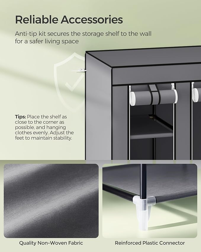 - [Everything in One Spot] Clothes are scattered everywhere, making your house look like a mess? Here comes the solution—the SONGMICS portable closet with a gray fabric cover, a compact home for holding your items in one spot and away from dust