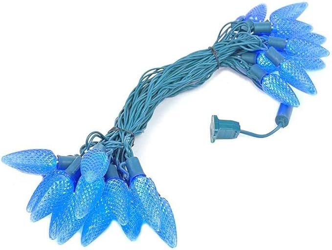 Novelty Lights 25 Feet 25 Light C9 Diamond Faceted LED String Lights, Blue, Pre-Lamped Holiday Lights on Green Wire, UL Listed Indoor/Outdoor, Connectable End-to-End