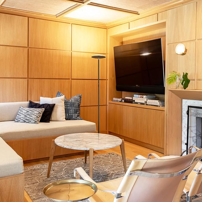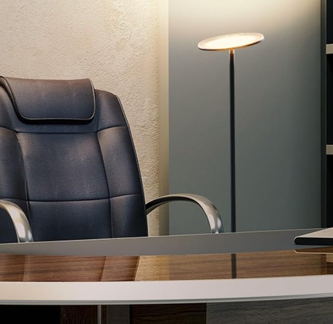 - 3-Way Dimmer and Memory Mode: The contemporary living room decor fits easily in corners and the base slides under sofas. Adjust brightness level with a simple touch of a button featuring three dimmer settings with this LED floor lamp. The rotating head of this tall lamp lets you angle the light for a greater light effect when desired. The standing lamp has a memory function to remember your last brightness setting when you turn the lamp on and works with wall switches.
