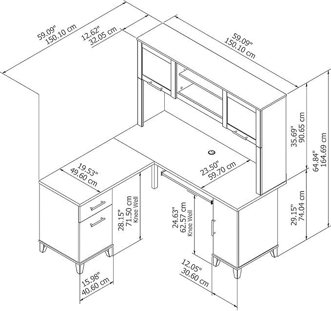 - Bundle includes: 60W L Shaped Desk with Storage, 60W Desk Hutch