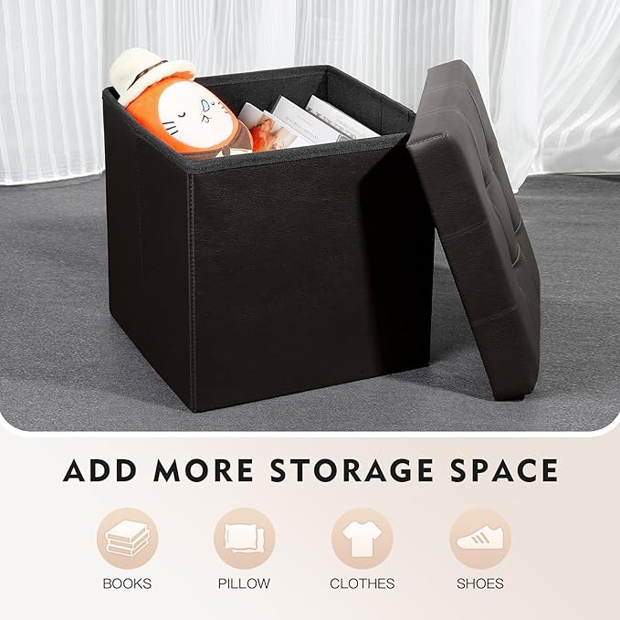 B FSOBEIIALEO Folding Storage Ottoman Cube Footrest Faux Leather for Living Room Seat Chest Brown 12.6"X12.6"X12.6"