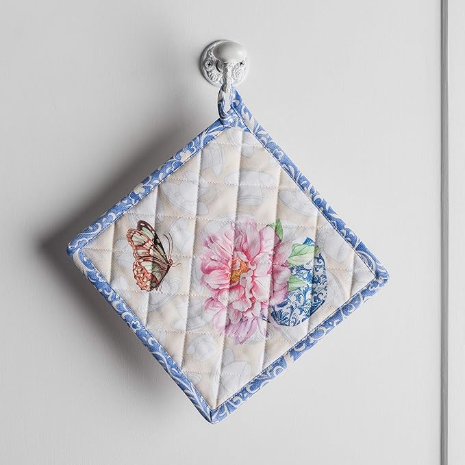 Maison d' Hermine Pot Holders 100% Cotton Heat Resistant Potholders 8" x 8" Hot Pads with Loop BBQ, Cooking, Baking, Grilling, Kitchen, Handling Hot Pans Spring/Summer (Pack of 1, Canton)
