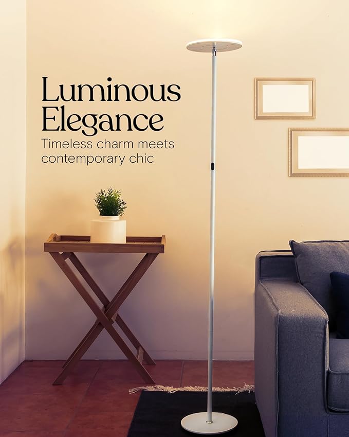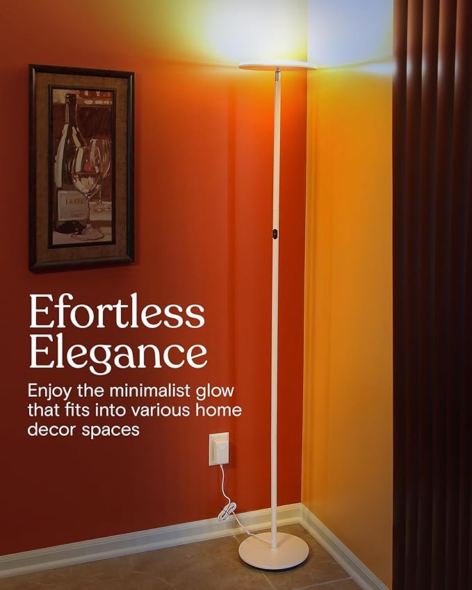 Brightech Sky LED Torchiere Super Bright Floor Lamp - Contemporary, High Lumen Light for Living Rooms and Offices - Dimmable, Indoor Pole Uplight for Bedroom Reading - White