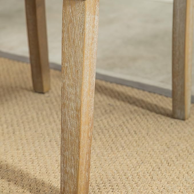 - The seats and backs are padded and button tufted. The durable wooden legs are finished in light color to match the style.