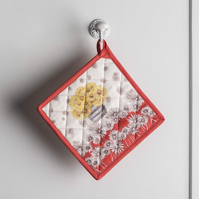 Maison d' Hermine Pot Holders 100% Cotton Heat Resistant Potholders 8" x 8" Hot Pads with Loop for Thanksgiving Christmas Decorations BBQ Cooking Baking Handling Hot Pans (Pack of 1, Bagatelle)