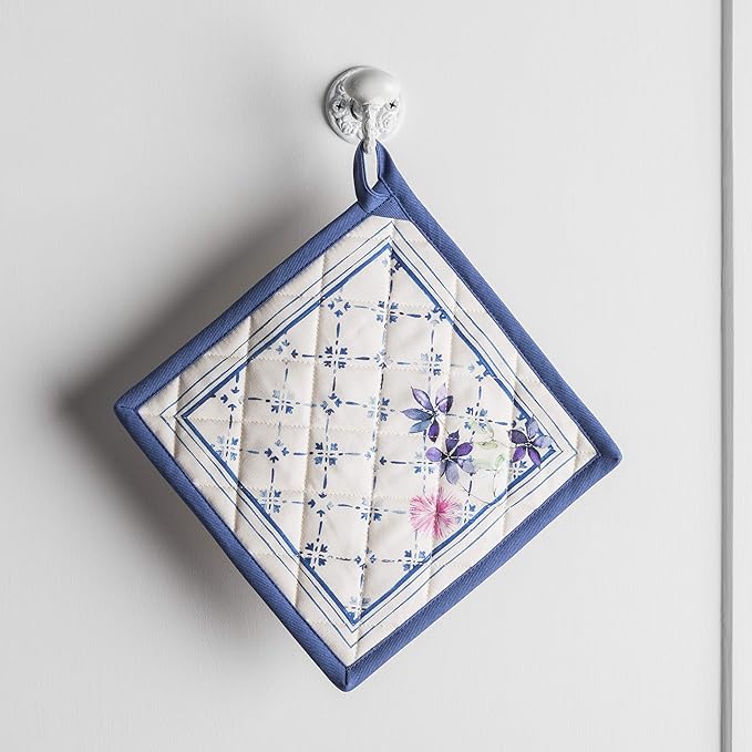 - Package includes: 1 pot holder measures 8"x8". Ideal as a hot pad for dishes, coffee pots, cast iron pans, or cookware. Designed in Europe and Made in India, it blends style, function, and comfort into a daily kitchen essential