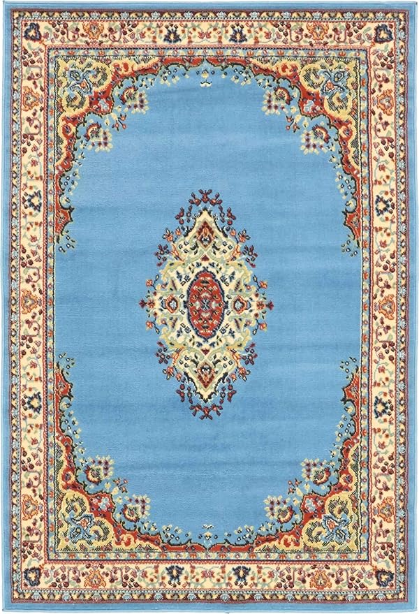 Unique Loom Reza Collection Traditional Persian Style Area Rug, 4 x 6 ft, Light Blue/Ivory