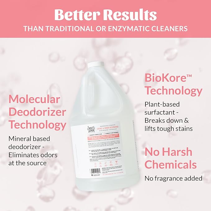 - Professional Strength - Skout's Honor pet urine remover offers professional-grade cleaning power, providing deep cleaning to tackle even the toughest pet stains and odors.