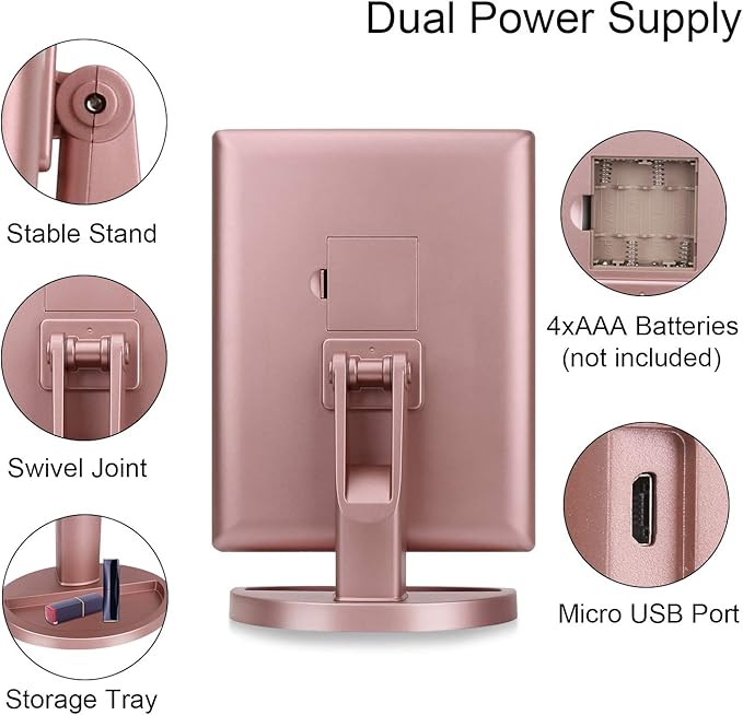 - Dual power supply modes:Operated by Micro USB cable supply or 4AAA batteries( battery not included, usb wire included) , pls noted the mirror can't store power by itself, you can't charge the batteries too.