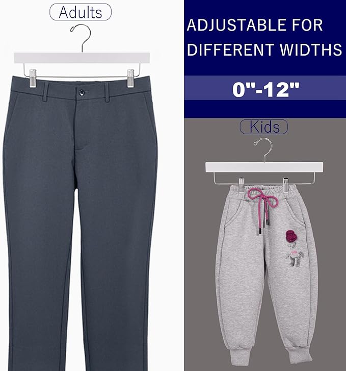 - Space Saving Pants Hangers - Our wood clip hangers improve closet storing capacity, keep clothes in neat and orderly, creating a exquisite storage closet space.Perfectly shortens the top distance, which is more suitable for hanging long pants.