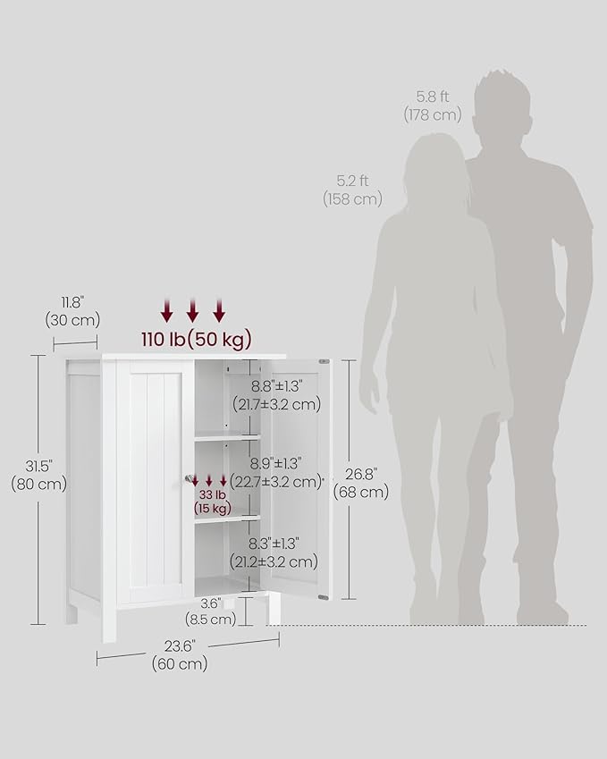VASAGLE Floor Storage Cabinet, Freestanding Storage Unit with 2 Adjustable Shelves, for Bathroom Living Room Dining Kitchen, 11.8 x 23.6 x 31.5 Inches, White UBCB60W