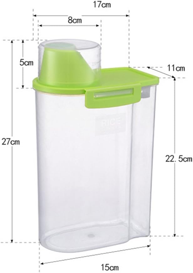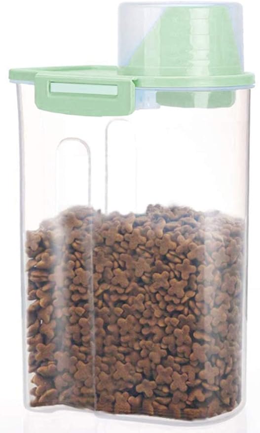 Pet Food Storage Container with Graduated Cup and Seal Buckles Food Dispenser for Dogs Cats (Green)