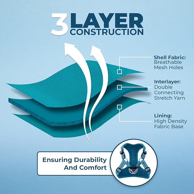 - REFLECTIVE WEBBING: 3M Scotchlite reflective material on the straps of this dog harness enhance your dog’s visibility during those early morning and late evening strolls.