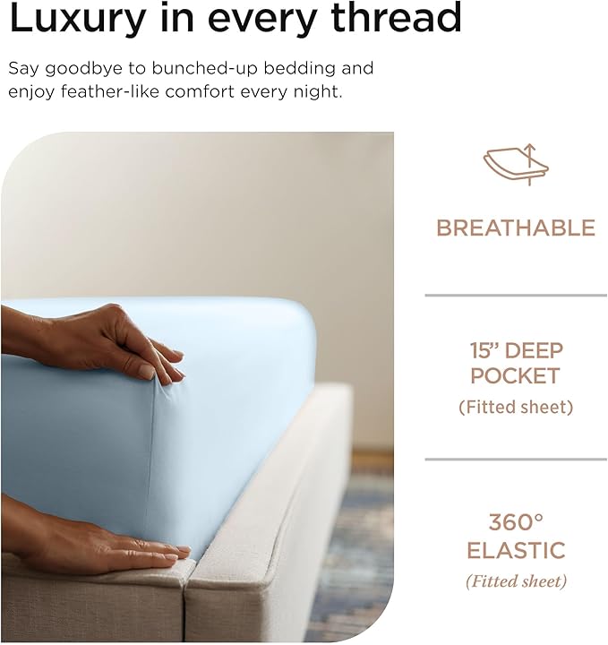 - PREMIUM QUALITY & EASY TO CARE BEDDING FOR YOUR CONVENIENCE: Each sheet is expertly woven together to ensure no pilling, fade-resistance, and long-lasting strength. The extra long staple cotton yarns ensure there are no loose fibers after regular washes. We recommend machine washing the sheets at room temperature and tumble drying them on low to accentuate its softness & prevent shrinkage. To avoid wrinkles, remove the bed linens immediately after drying & fold them neatly until next use.
