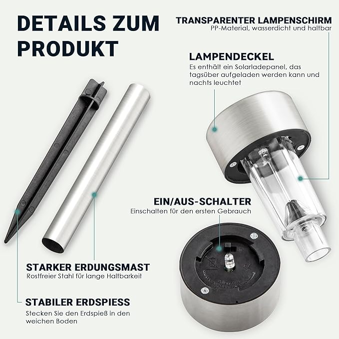 - Easy To Assemble: No tools required! Simply flip the switch and insert the solar garden lights into the ground. For best results, dig a small hole first