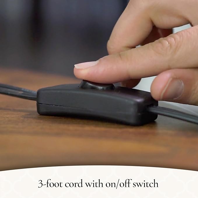 - 3FT CORD WITH ON/OFF SWITCH – This candle warmer has a 3ft cord featuring a roller switch for simple on/off control. The included NP1 warming bulb lasts for 2,000 hours and can be replaced.