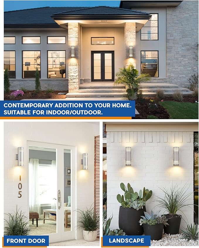 - Up Down Cylinder Exterior Wall Fixture:IP65 waterproof tested,the patio wall light is perfect for exterior use. No matter it is rain or snow.
