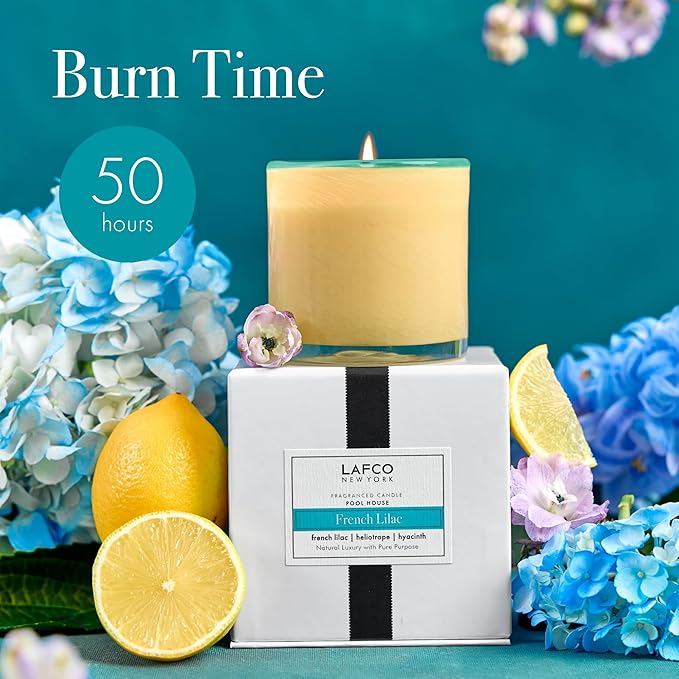 - HOUSE & HOME COLLECTION - Our House & Home collection transports you to a room, setting, or destination through the combination of scent, color, and design. The French Lilac candle evokes the mood of being in a Pool House.