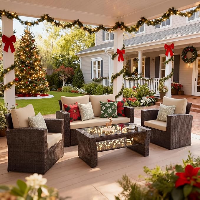 - 【Durable and Long-lasting Outdoor Furniture】Experience the durability and reliability of this 4 piece outdoor furniture. Crafted with premium PE rattan and a sturdy powder-coated steel frame, it is built to withstand any weather condition, ensuring years of outdoor enjoyment. Whether you have a balcony, lawn, garden, or poolside, this set is perfect for all outdoor spaces.
