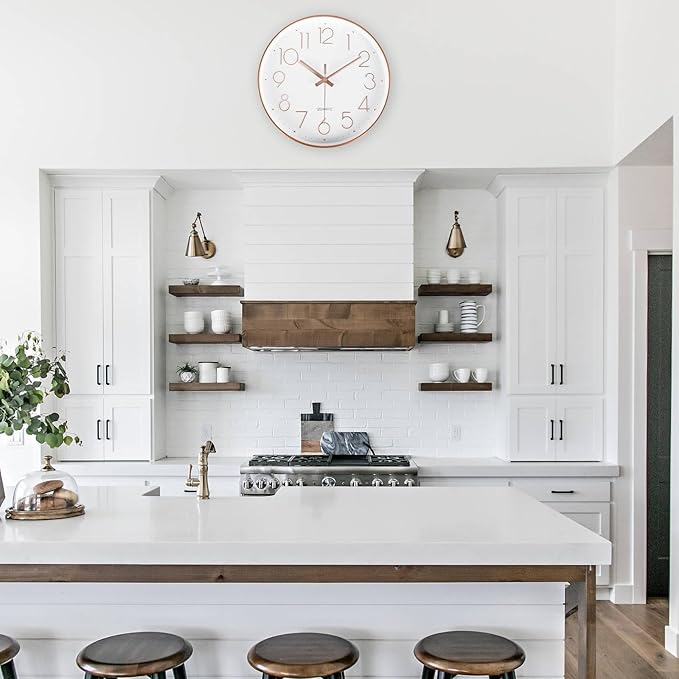 jomparis 12 Inch Battery Operated Silent Non-Ticking Wall Clock, Quality Quartz Sweep Rose Gold Wall Clock for Home Bedroom School