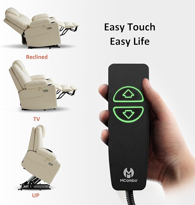 - Power Lift Assistance: Counter-balanced lift mechanism with a TUV certified actuator pushes the entire chair up to assist the user stand up easily without adding stress to the back or knees, smoothly adjust to the lift or reclining position you prefer by pressing two buttons on the remote control