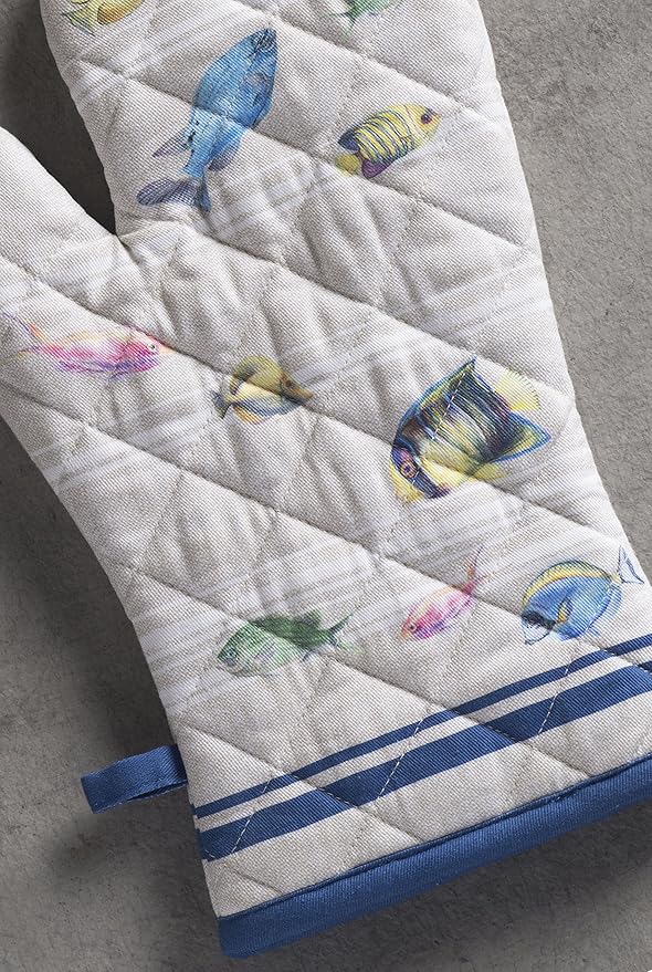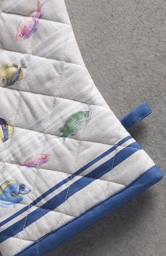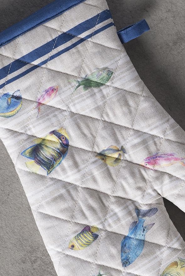 Maison d' Hermine Oven Gloves 100% Cotton Oven Mitt 7" x 13" with Loop Heat Resistant, BBQ, Cooking Gloves, Baking, Grilling, Kitchen, Handling Hot Pans Spring/Summer (Pack of 1, Poisson)