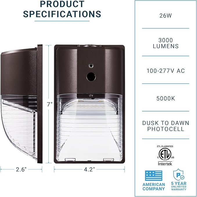 - ENERGY EFFICIENT: Use our 26W LED Wall Pack Light to replace 150W Incandescent/Fluorescent lights and save on your electric bill. With a lifetime of 30,000+ rated hours, you'll avoid the hassle of frequent bulb changes and enjoy the great savings.