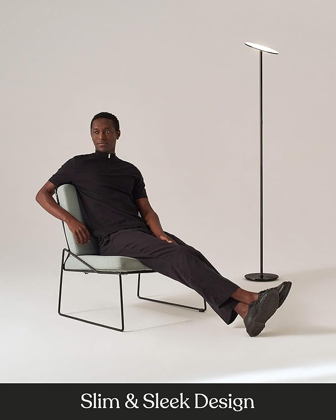 - 3-Way Dimmer and Memory Mode: The Sky complements contemporary living room decor and its body fits easily in corners. Plus, the base slides under sofas. Adjust the brightness level of this LED floor lamp with a simple touch of a button featuring three dimmer settings. The pivoting head of this tall lamp lets you angle the light for a greater illumination when desired. The standing lamp has a memory function to remember your lamp's last brightness setting and works with wall switches.