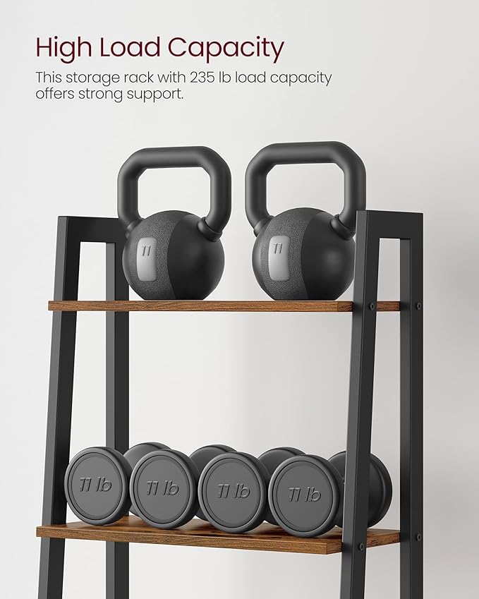 VASAGLE Ladder Shelf, 5-Tier Bookshelf, Storage Rack, Bookcase with Steel Frame, for Living Room, Home Office, Kitchen, Bedroom, Industrial Style, Rustic Brown and Ink Black ULLS45X