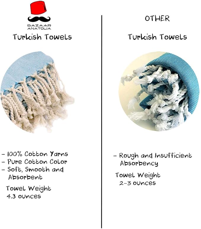 - High Quality: Soft and absorbent with 100% cotton yarns. Turkish towels becomes softer and absorbent after several washes.
