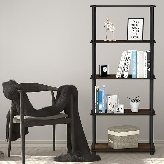 Furinno TURN-N-TUBE Storage Shelves, 5-Tier Book Shelf, Corner Shelf, Toolless Open Shelves, for Organization and Storage, Living Room, Garage, Home Office, Columbia Walnut