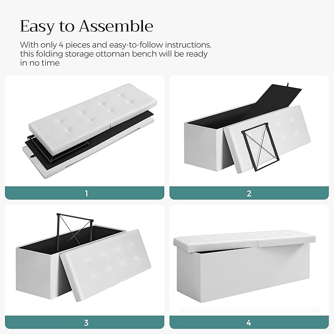 - 【BUILT TO LAST】Featuring sturdy MDF panels for the tops and sides, and a lid reinforced with metal corner guards, the folding storage bench can hold up to 660 lb (300 kg). Its solid construction ensures it will last for years to come