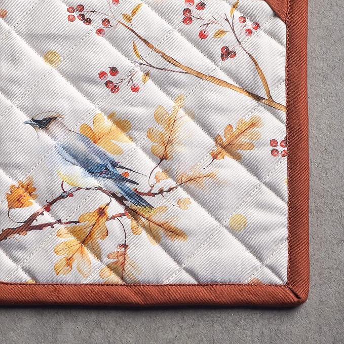 Maison d' Hermine 100% Cotton Oven Mitt & Pot Holder Set (7.5"x13" & 8"x8") Heat Resistant BBQ Cooking Gloves with Loop for Thanksgiving Christmas Decorations Handling Hot Pans (Oak Leaves)