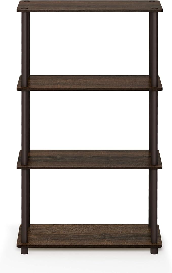Furinno Turn-N-Tube 4-Tier Multipurpose Shelf Display Rack, Round Tubes, Walnut/Brown