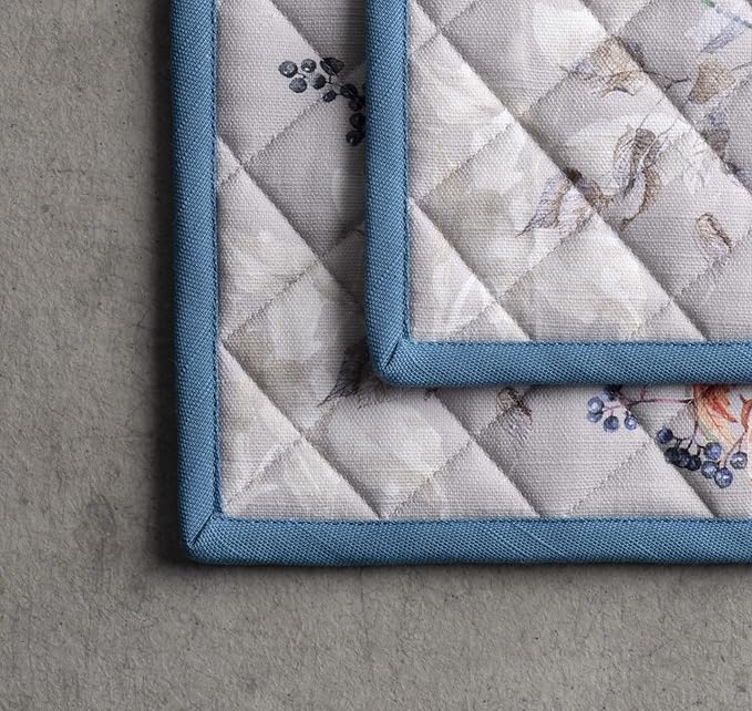 - Package Includes: Set includes 2 pot holders measuring 8" x 8", perfect for handling hot pots, pans, and dishes safely. Made from 100% cotton for reliable heat protection and durability. Designed in Europe and made in India